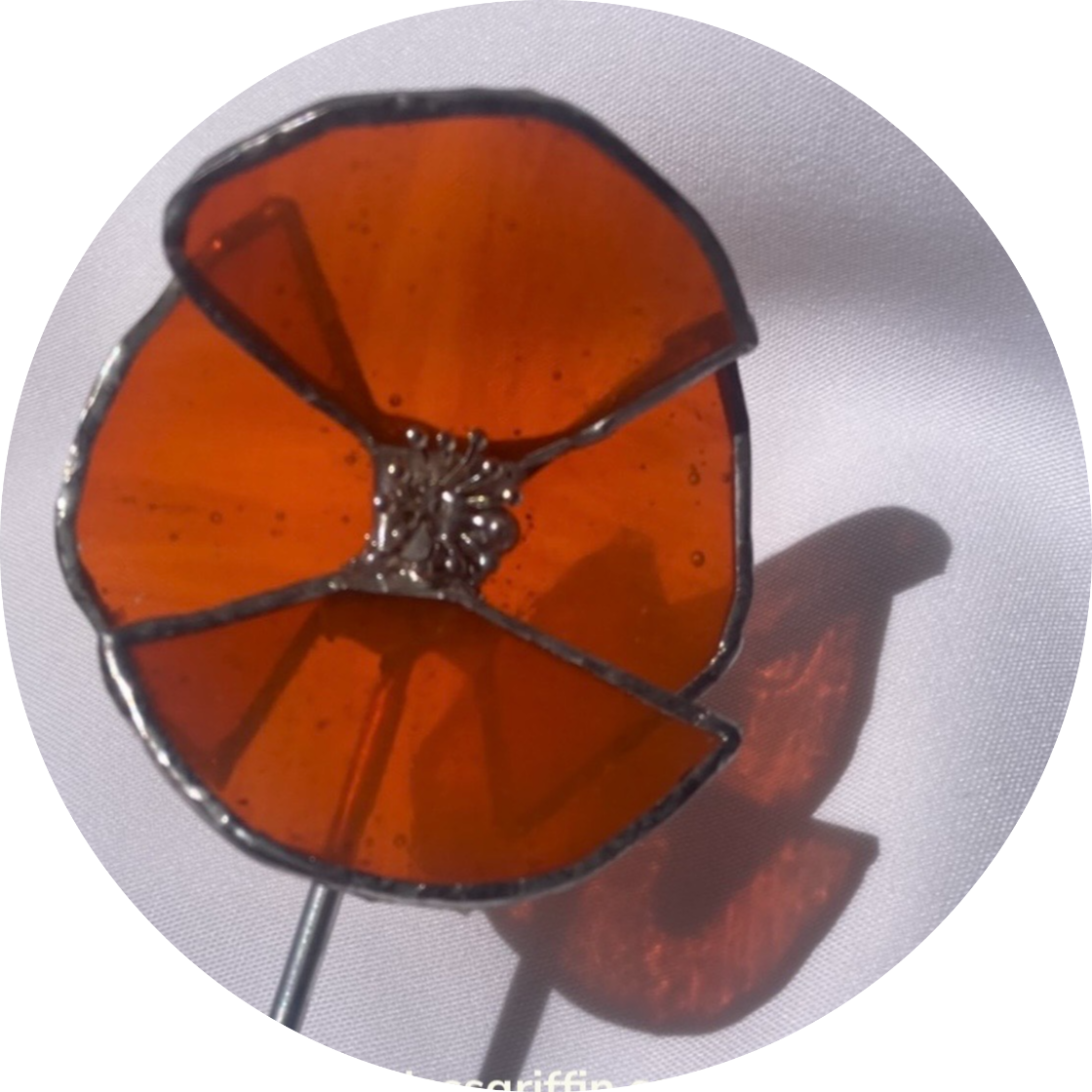 Single orange stained glass poppy, with a 12 inch stem.