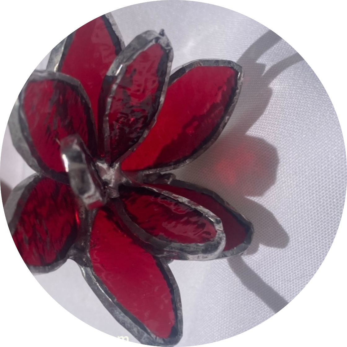 A sweet wild English Rose with 8 hand-cut petals in textured cathedral red.