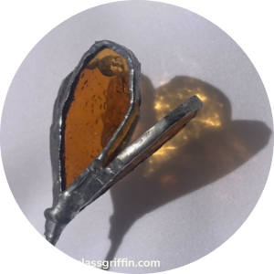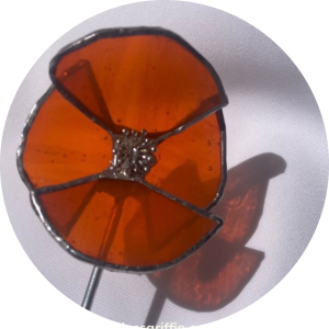 This fresh and bright poppy is made with orange cathedral glass and features a unique center.