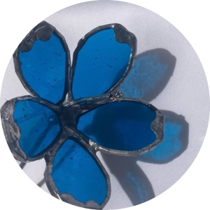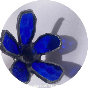 This textured cobalt blue Daisy has five hand-cut petals, and a glass center. She loves me… she loves me not!
