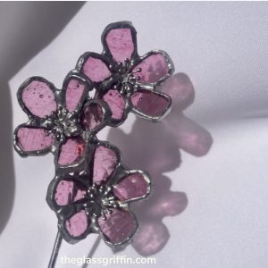 Three sweet little cherry blossoms on one stem in textured cathedral pink.